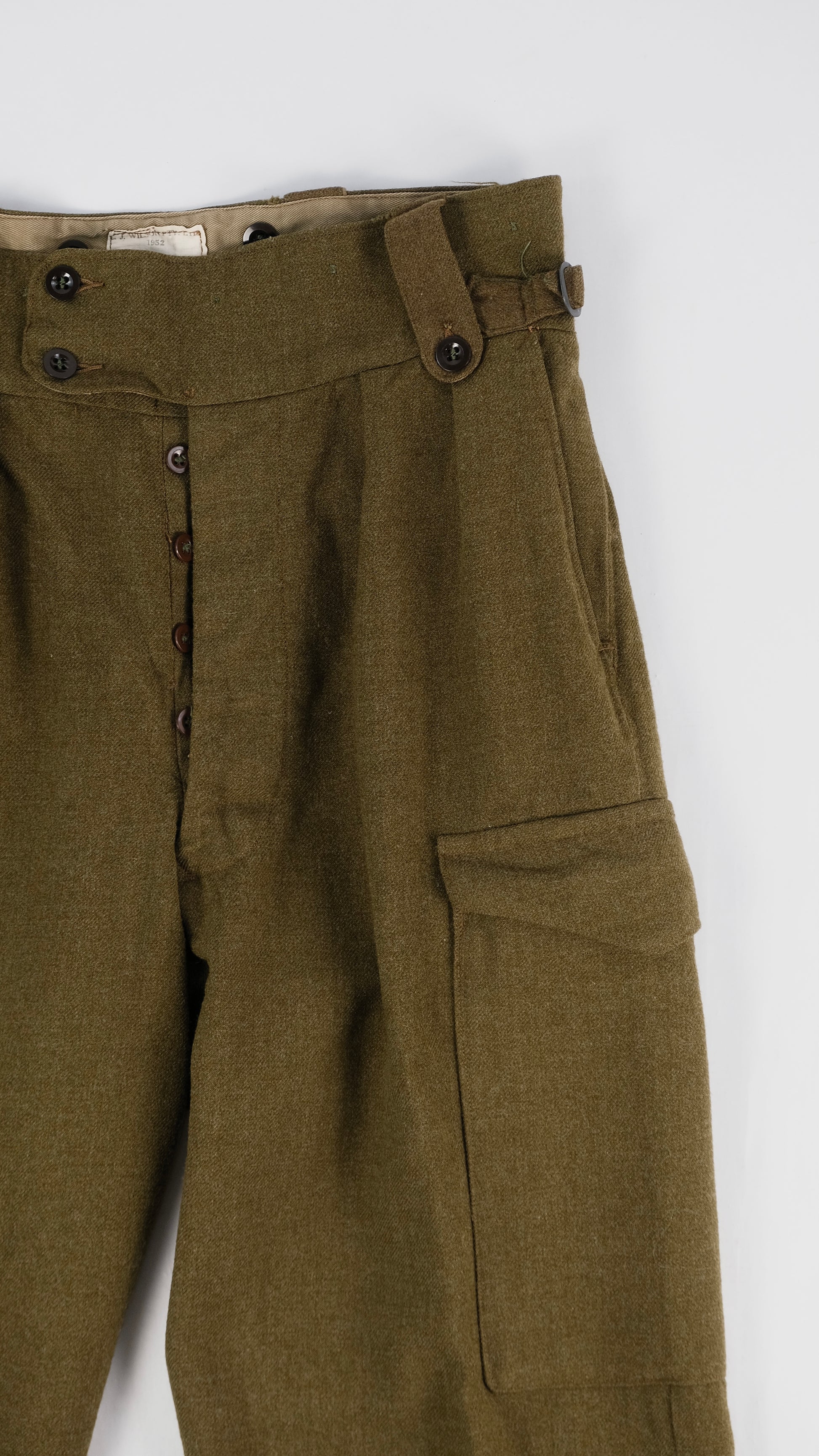 Stay stylish and comfortable with these 1952 Australian wool Gurkha pants. Made by J. Wilson, stencil on label.