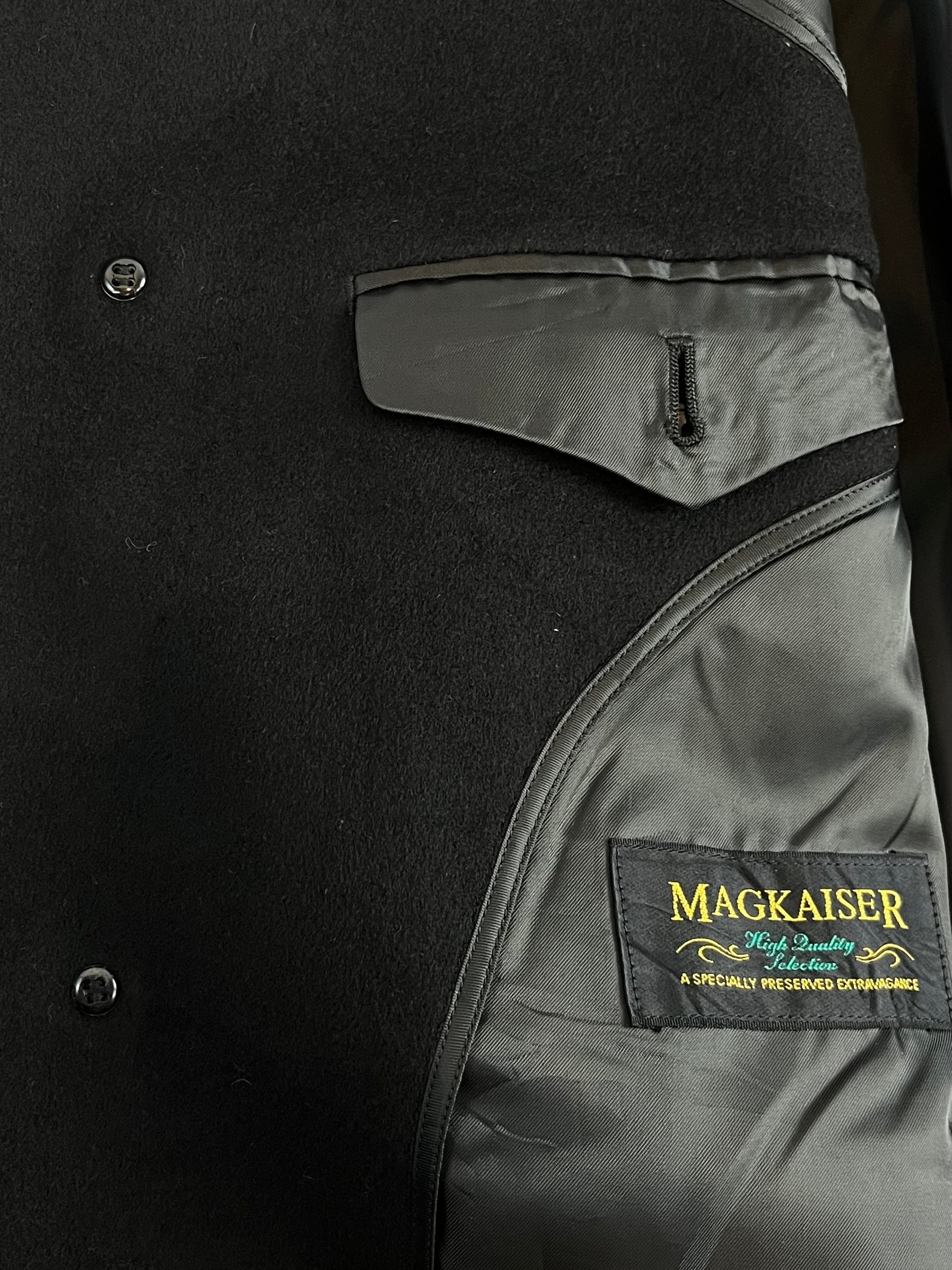 Experience timeless elegance with this authentic 1970s Japanese pure cashmere coat by Magkaiser. In classic black with a single-breasted design, it offers both warmth and style. Approximate size L—please check measurements to ensure the perfect fit. Exceptionally well-preserved, this vintage piece brings cozy luxury and unique craftsmanship to your wardrobe.
