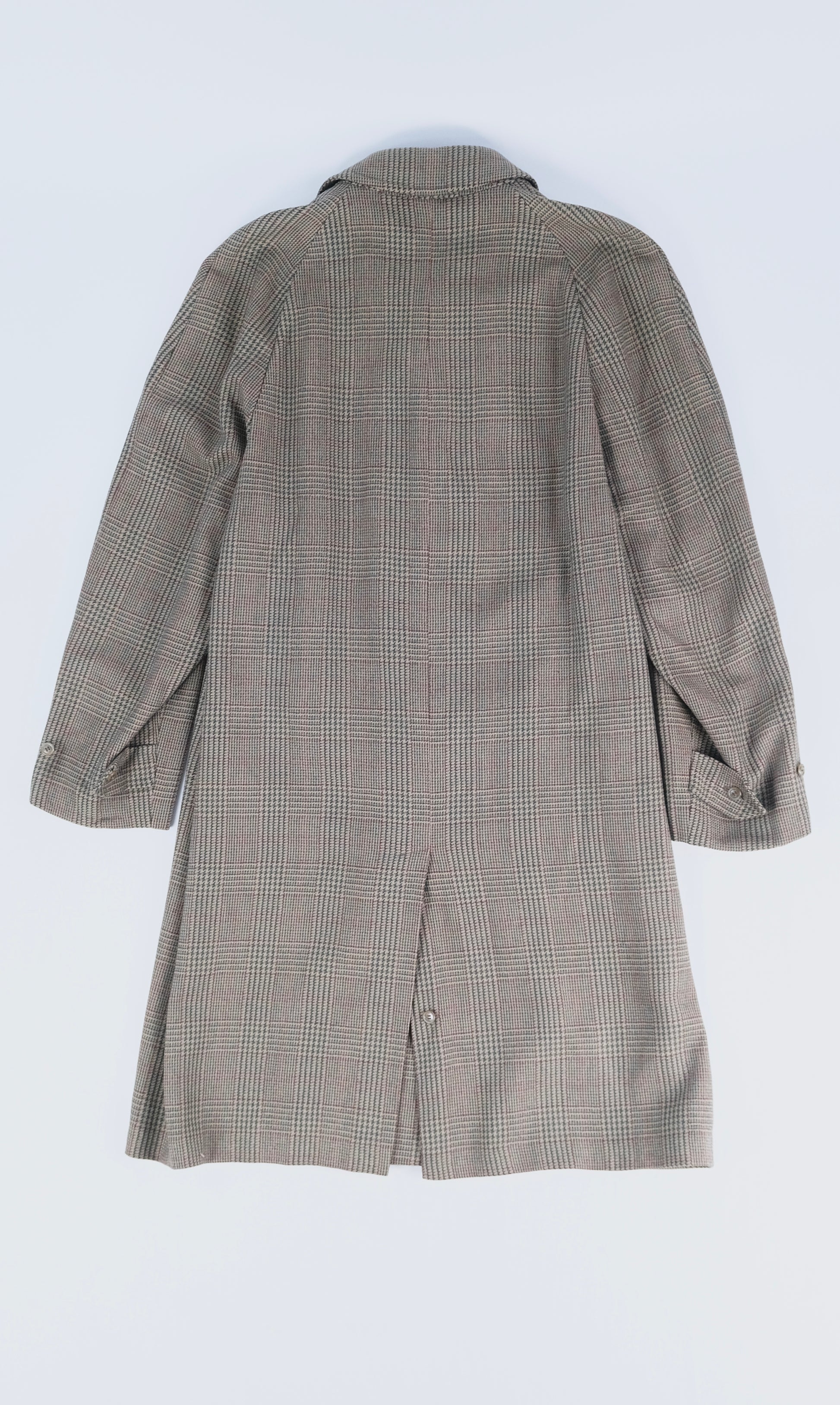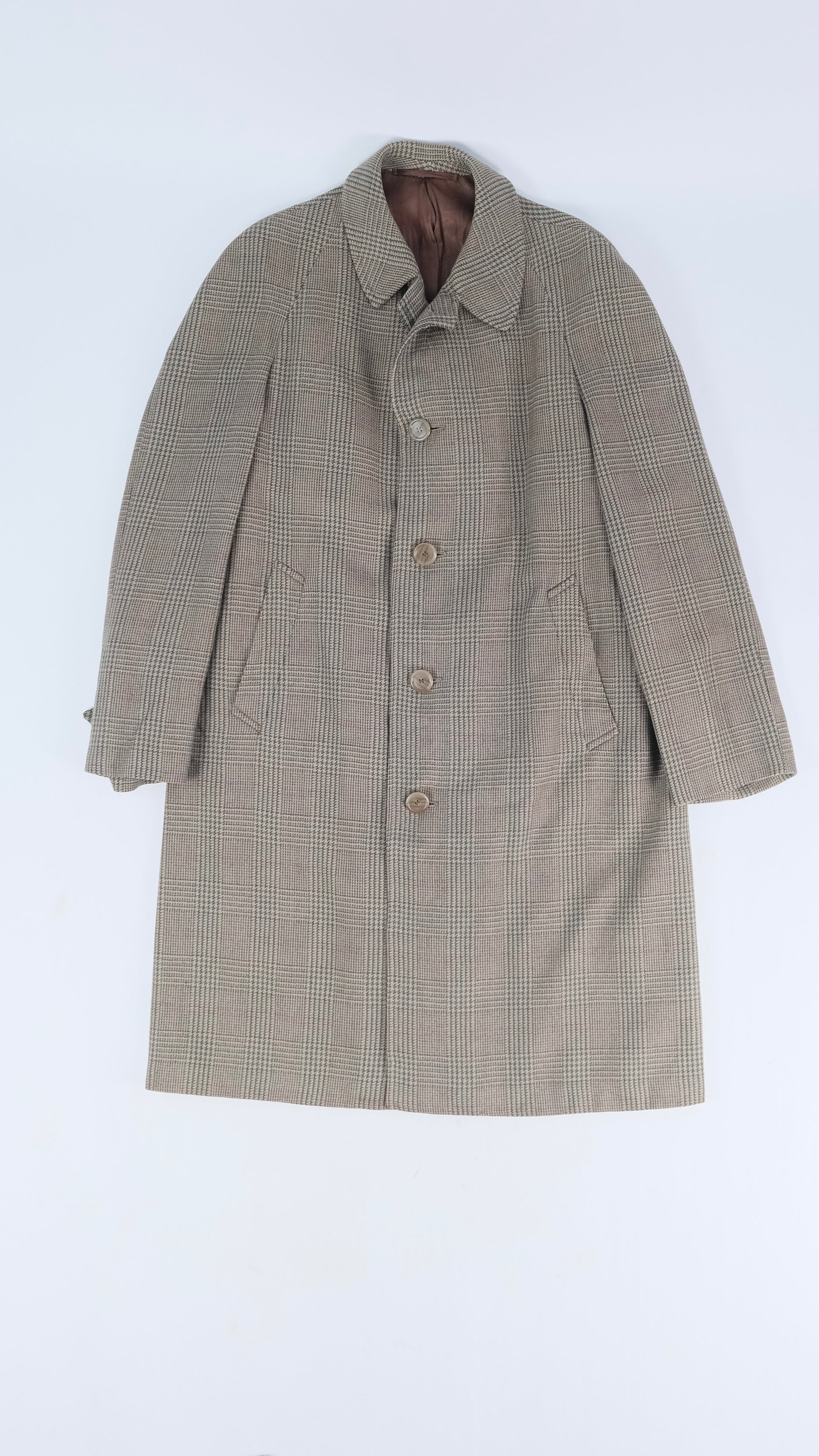Discover timeless elegance with this authentic vintage Meanson London wool checkered coat, crafted exclusively for Ugolini Firenze. Dating back to the late 1960s-70s, this classic single-breasted design features a sophisticated color palette and impeccable tailoring.