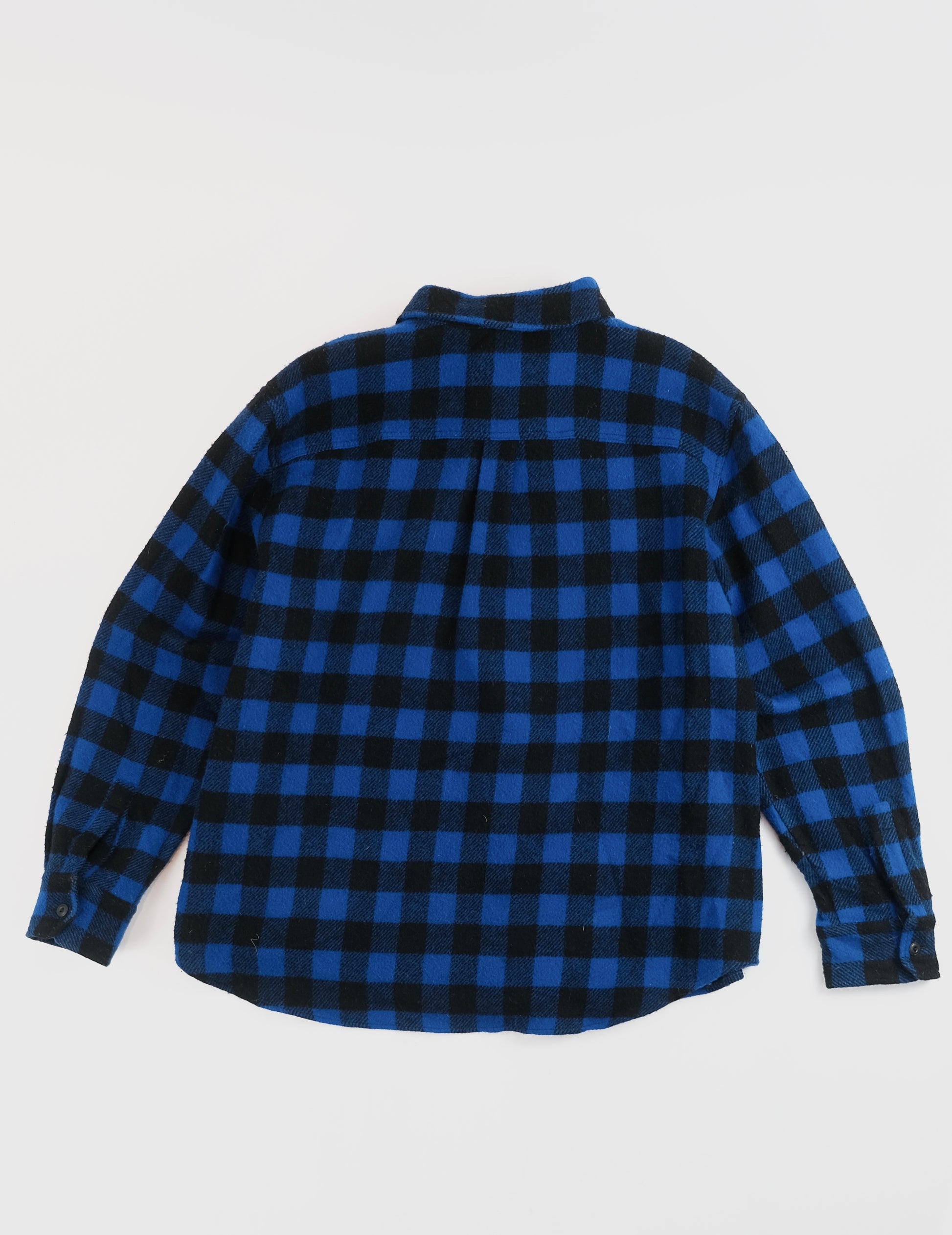 This vintage 80s wool overshirt in blue buffalo plaid by Woolrich is a classic piece made in the USA. In excellent condition and sized XL, it offers warmth and timeless style that's perfect for layering or adding a touch of retro charm to your outfit. A sturdy, authentic find for those who appreciate quality and heritage.