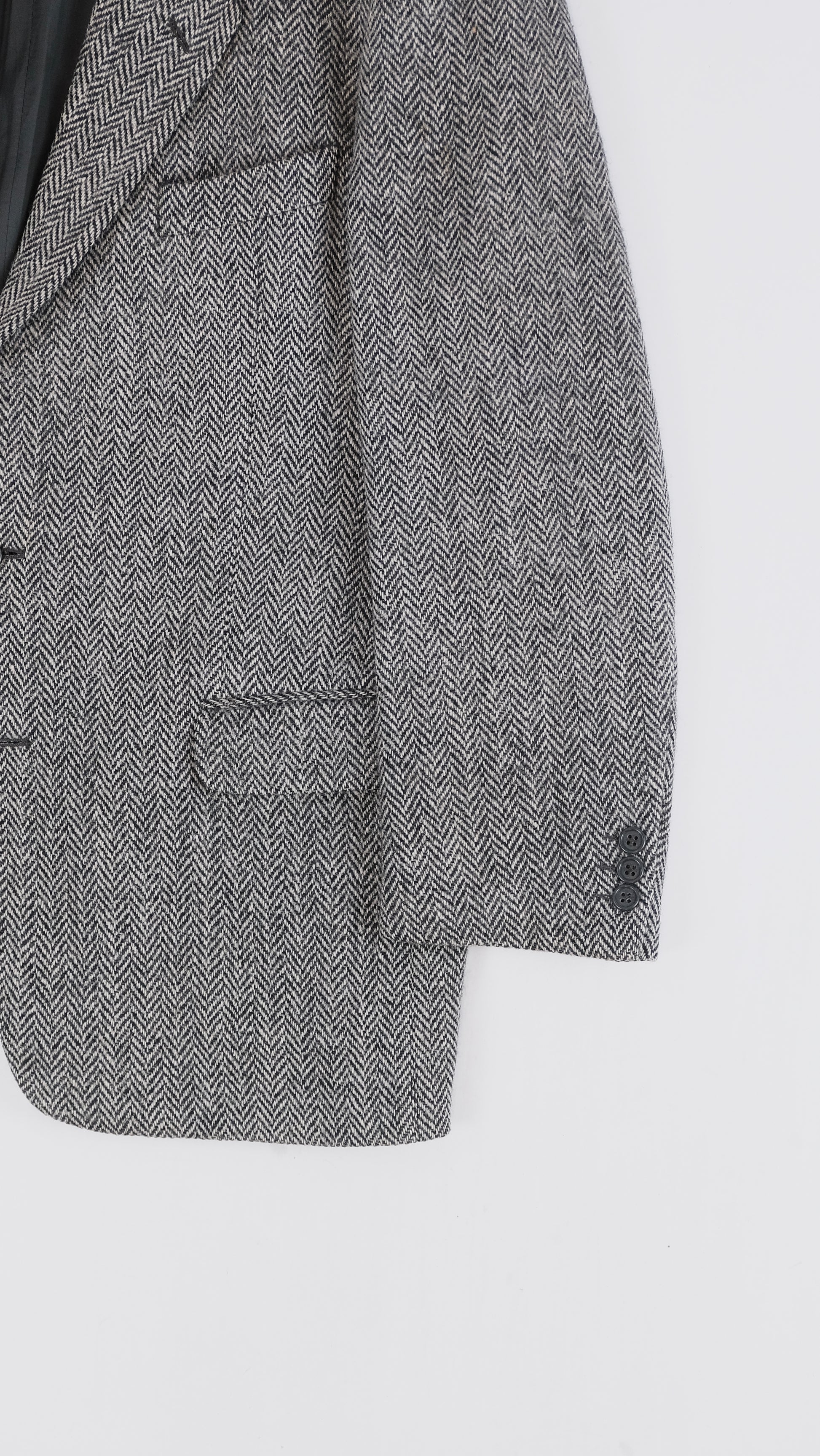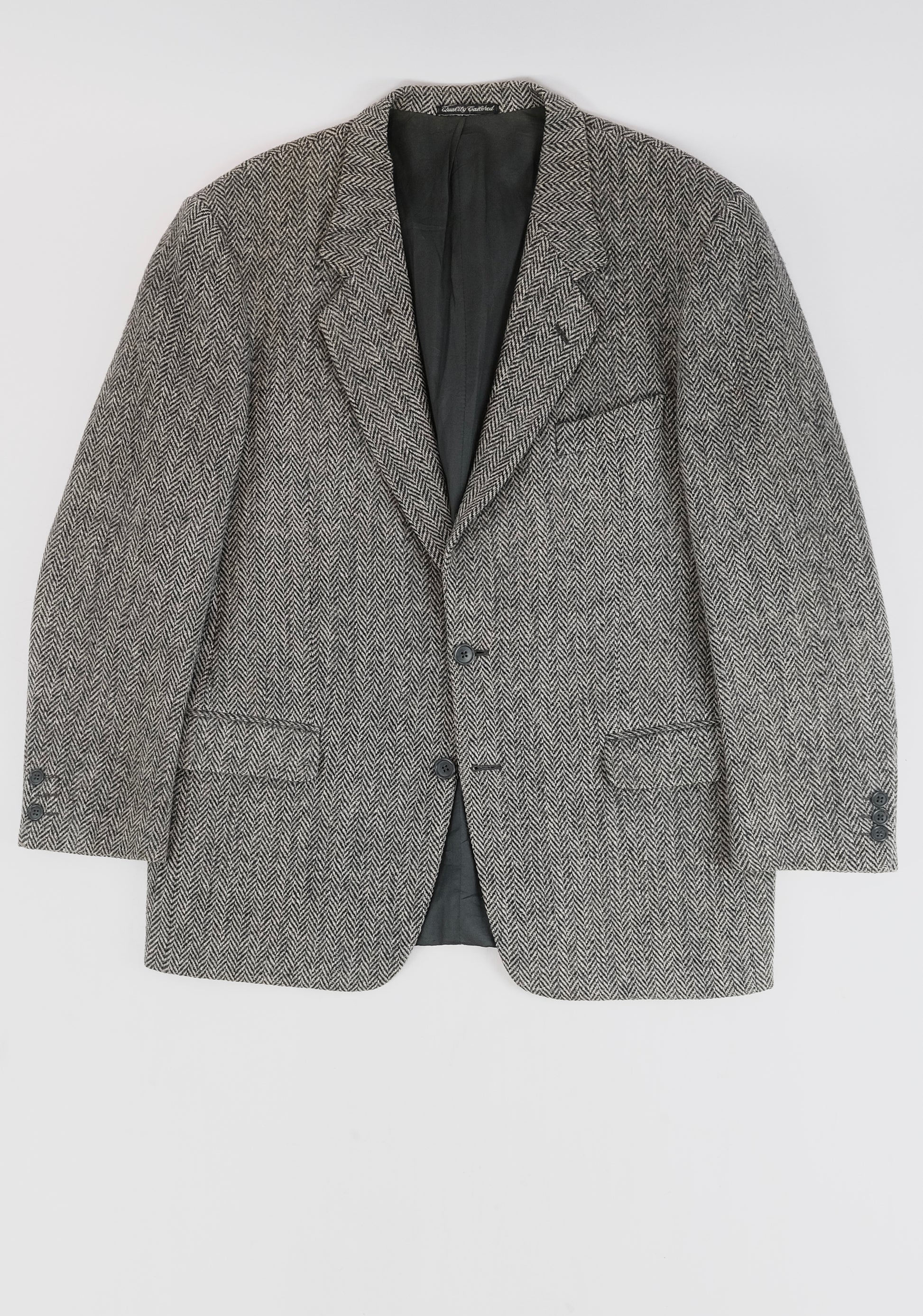 Step back in time with this exceptional 1980s Harris Tweed jacket, showcasing the iconic herringbone twill weave in a versatile grey tone.