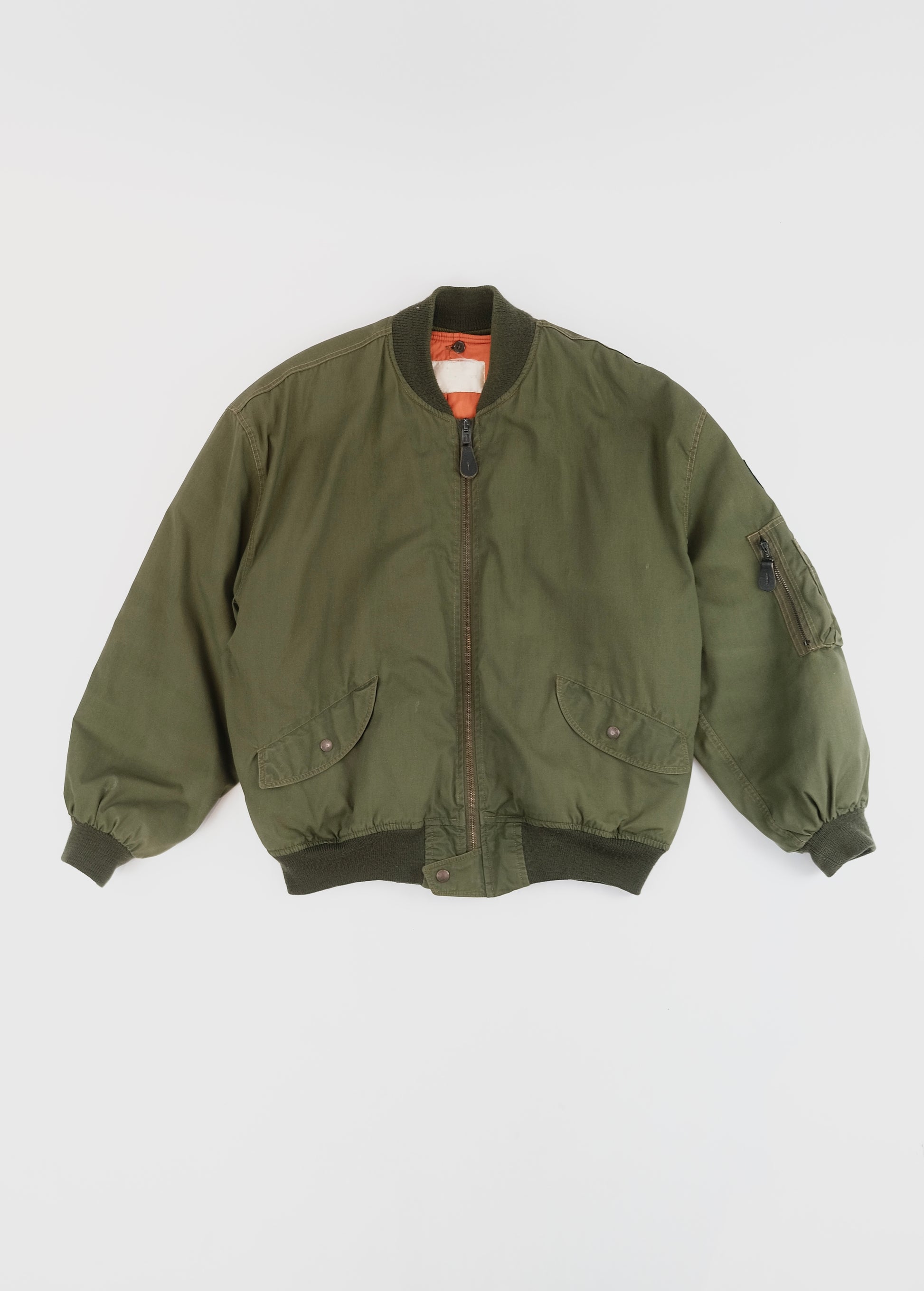 The 80s MA-1 bomber jacket by Italian military is a classic aviation piece, inspired by the original 1950s USAAF design, but made in cotton.