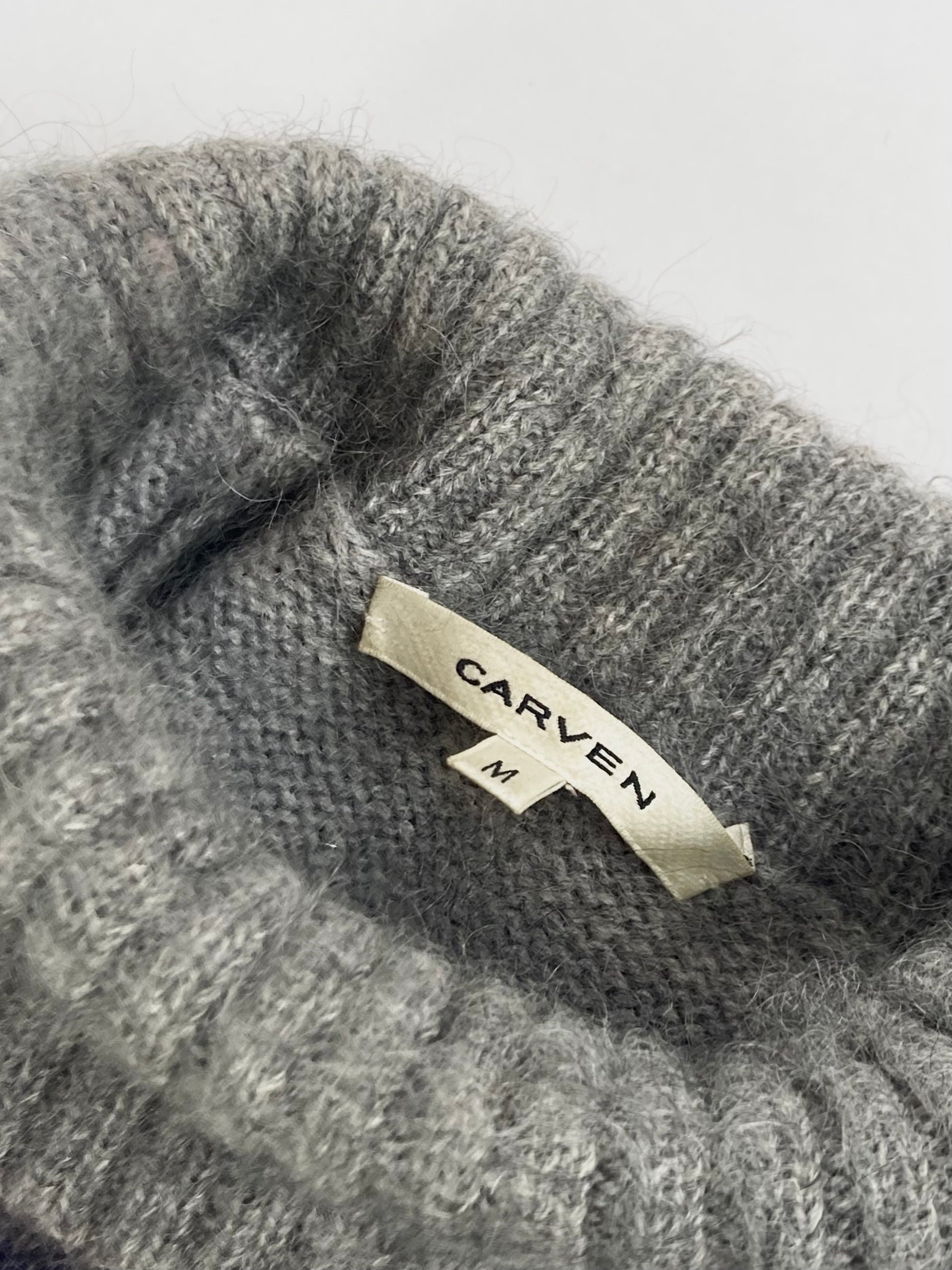 Luxurious wool-mohair blend rollneck sweater in size M, crafted for refined comfort. Features a soft, sumptuous texture with a distinctive grey collar that adds sophisticated contrast. The sweater showcases vibrant, cheerful tones throughout, perfect for elevating everyday wear or layering. Excellent condition, ready to become a wardrobe staple for those who appreciate quality knitwear and timeless style.